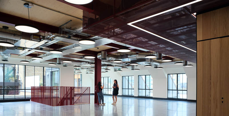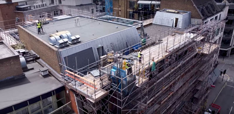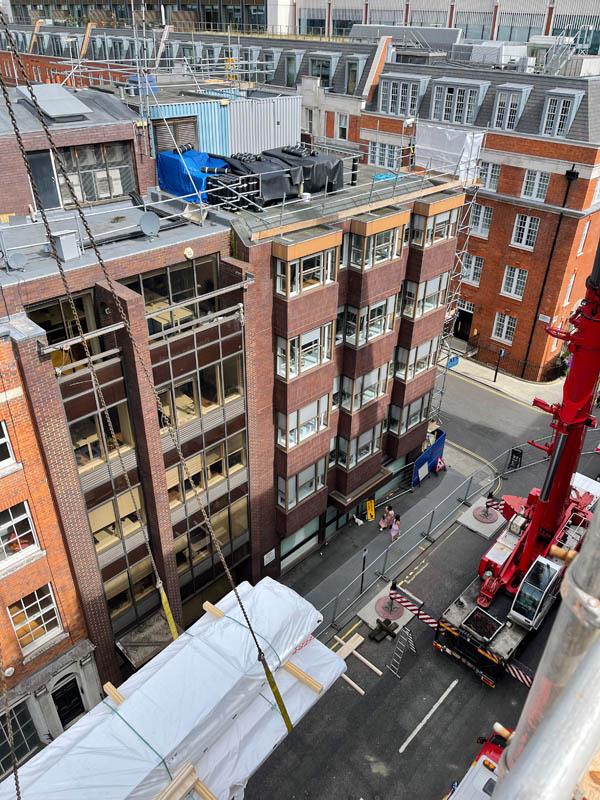 A hybrid CLT and steel vertical extension creates a new 5th floor along with roof terrace above for this existing office building located just off London’s Oxford Circus. Existing communal areas have been refurbished and a new reception area created. Overall the scheme provides approximately 13,500 sq ft of Category A and B workspace. G-frame were responsible for the design, supply and installation of the CLT infill panels that create the 5th floor. Logistics were complex due to the building’s Central London location and the extremely tight site and access for the G-frame team to install the CLT was limited to weekends.