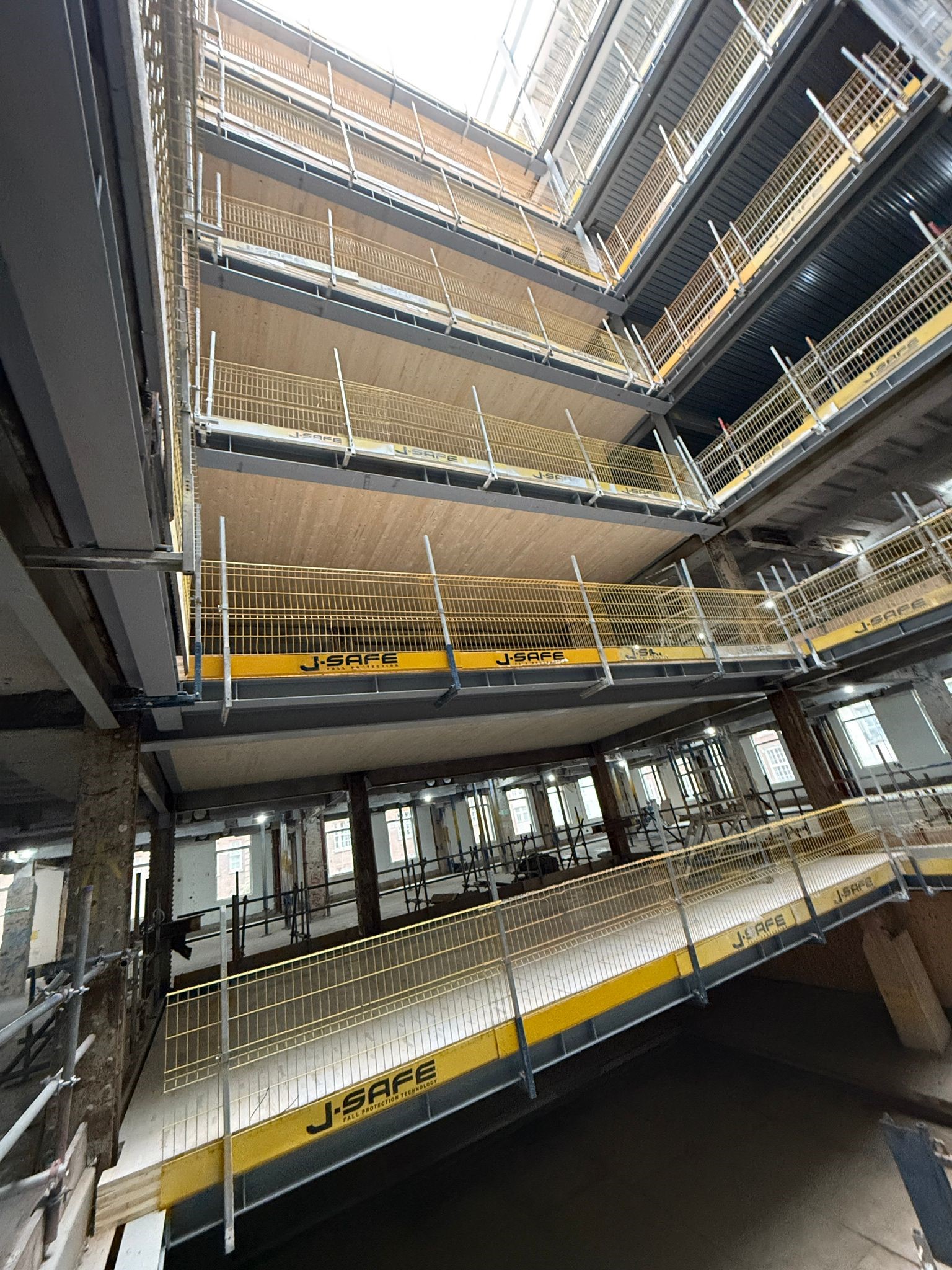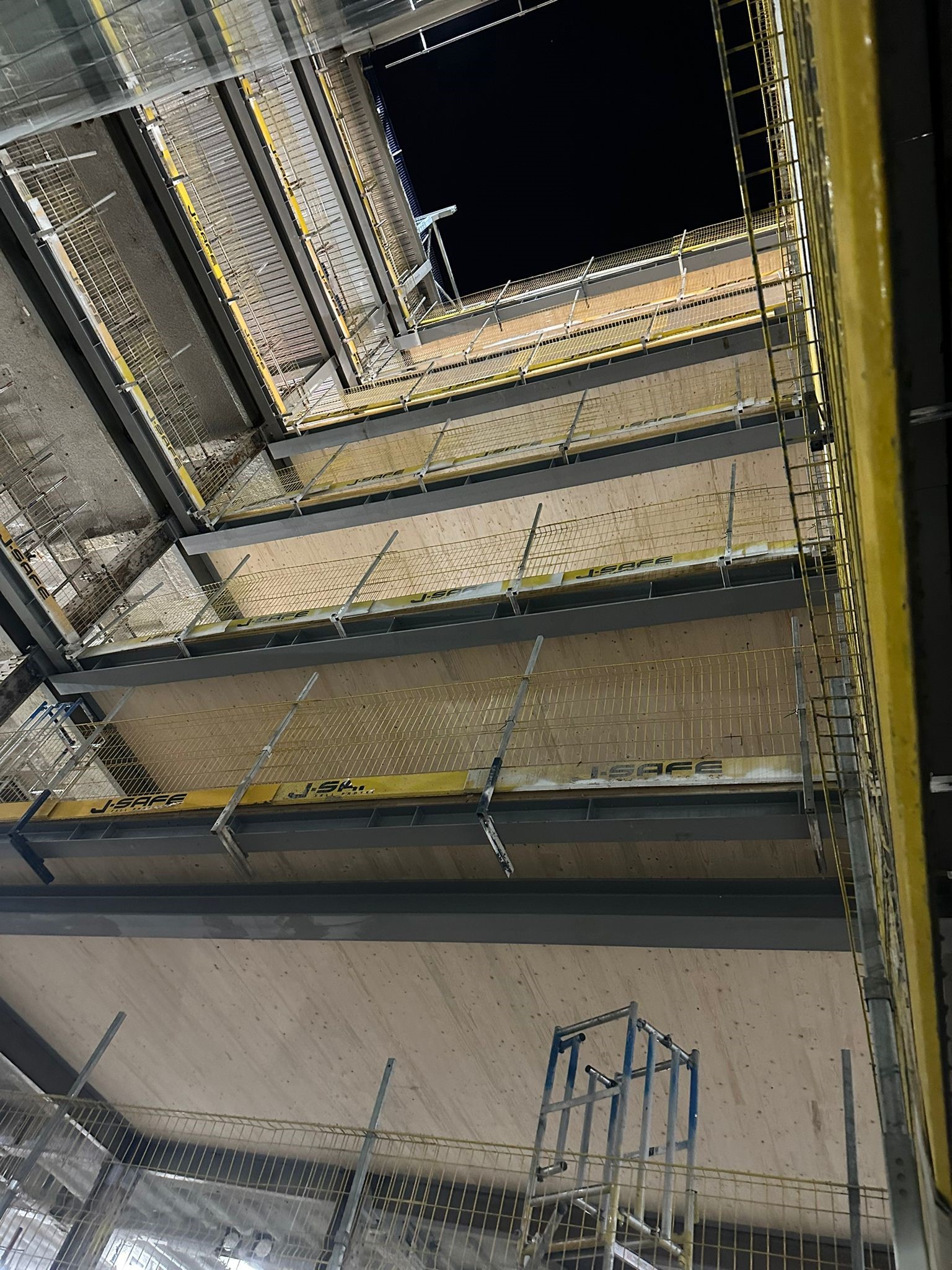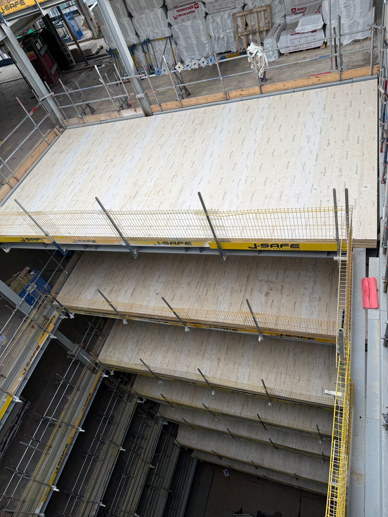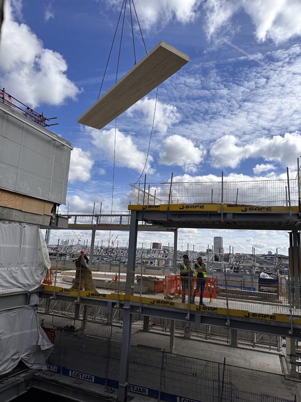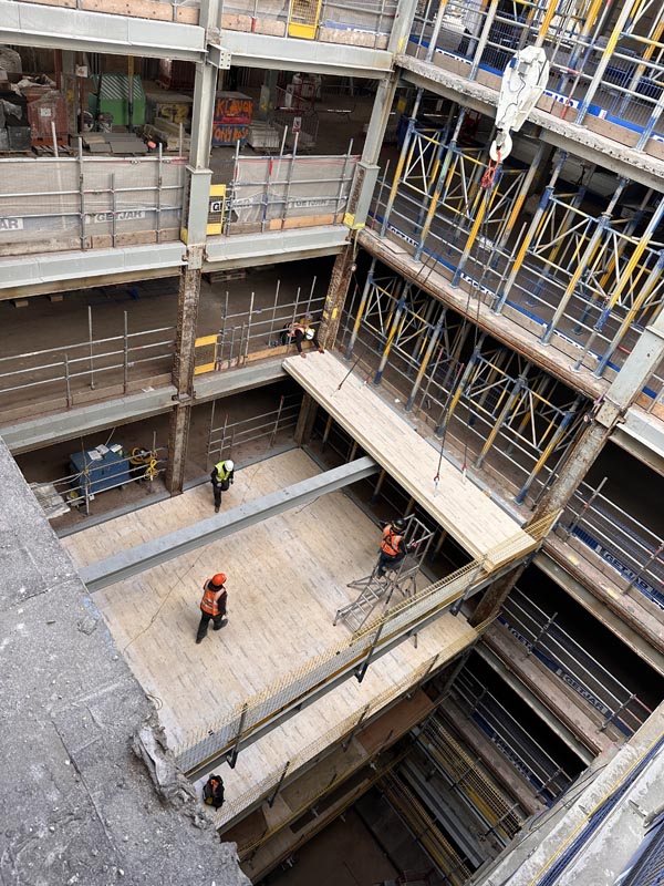 The redevelopment of this landmark building in London’s Mayfair will provide 173,000 sq ft of prime office space. To maximise internal space, two central eight storey atria are being infilled with a steel frame and CLT floor decks designed, supplied and installed by G-frame Structures Ltd.