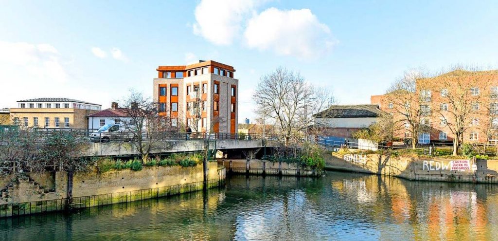 The G-frame team installed this extremely challenging CLT project on a tiny, operational lock keeper’s island on London’s Stratford Back Rivers. The scheme by Roberts & Treguer, comprises a five storey apartment block and two semi-detached houses built either side of the refurbished original lock keeper’s house. Building with CLT has helped the new homes meet O.6 ACH (air change), the maximum allowed to achieve Passivhaus standard. CLT has been left exposed throughout the seven spacious new homes, all of which enjoy views of the Queen Elizabeth Olympic Park.
