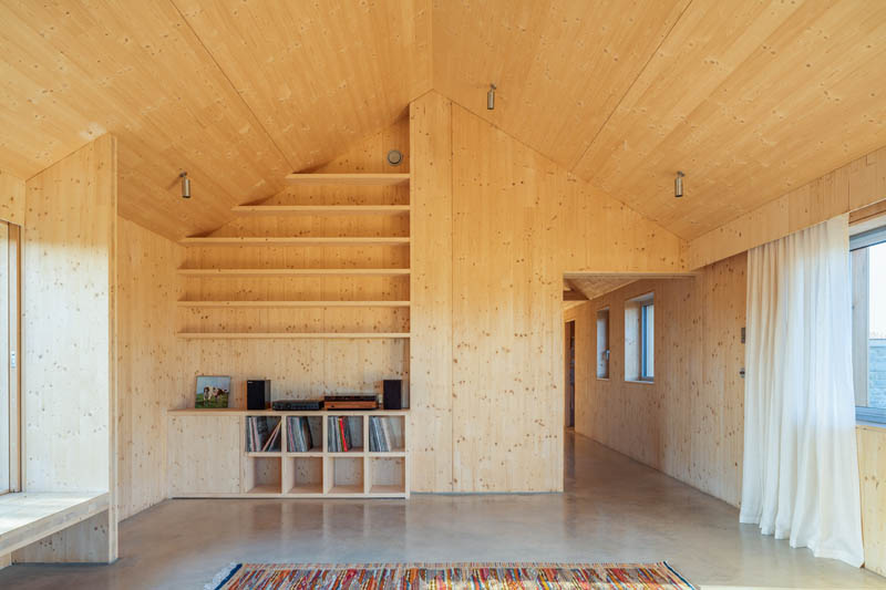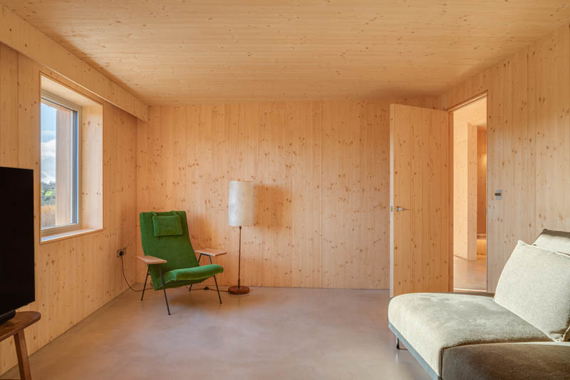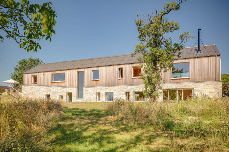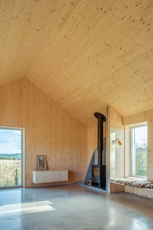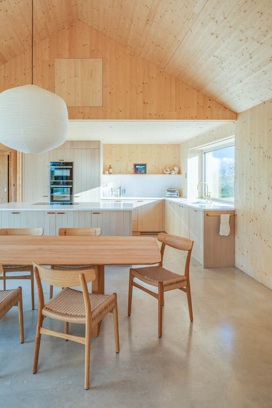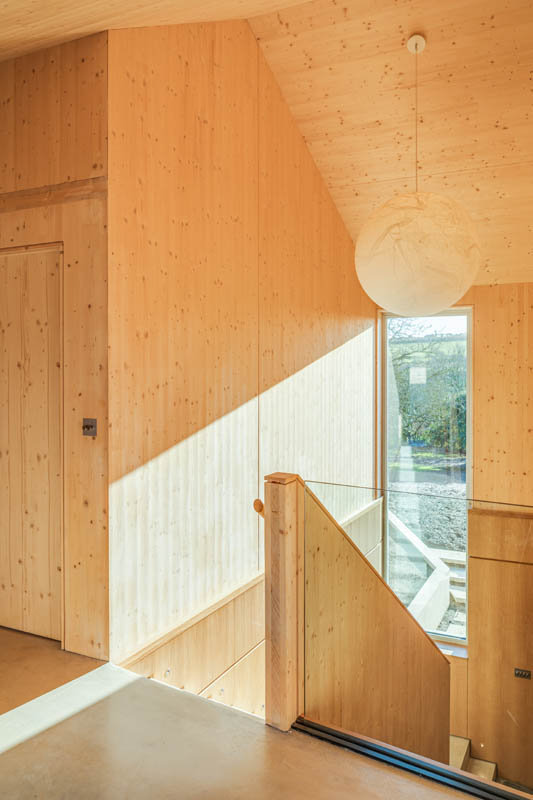 A four bedroom family home which replaces an old stone building located on a complex curved site. The original stone has been re-used at ground floor and a CLT upper floor added which features high vaulted ceilings and floor to ceiling windows in the main living spaces. CLT has also been used to create shutters, sliding panels and bespoke joinery. At first floor the house opens into an upper garden with a swimming pool and the ground floor opens into a lower garden. A courtyard has also been created with part of the existing structure. G-frame were responsible for the design, supply and installation of the CLT structure. This is the second of our projects with Micah T Jones Architects after County Down Barn