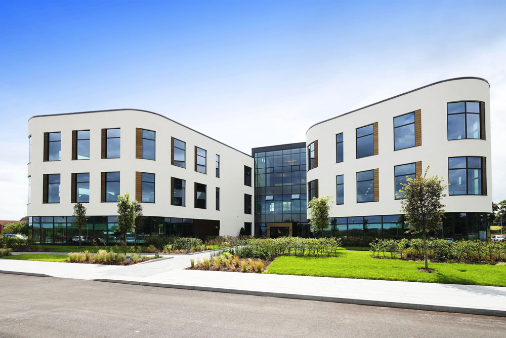 Multi-award winning office space for the UK’s leading telephone answering specialist Moneypenny. The new three storey development, located on a 10 acre greenfield site, provides 90,000 m2 of office space. A central triple height atrium featuring a waffle-effect glulam roof creates break out space, meeting areas and restaurant facilities for staff. The glulam beams and infill panels for the atrium roof, which run in-between two steel structures spanning 25 m, were supplied and installed by G-frame. The waffle-effect achieved by the roof helps to create a stunning focal point for the building. A tree house meeting room, village pub and bleacher seating complete the accommodation.